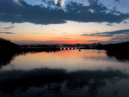 そしてこの下の写真は宿泊先ホテルからの風光明媚な景色です。到着した日は暗かったので気づきませんでしたが、朝起きてビックリしました。そして到着翌日の夕方、スマホでさっとパシャリ。