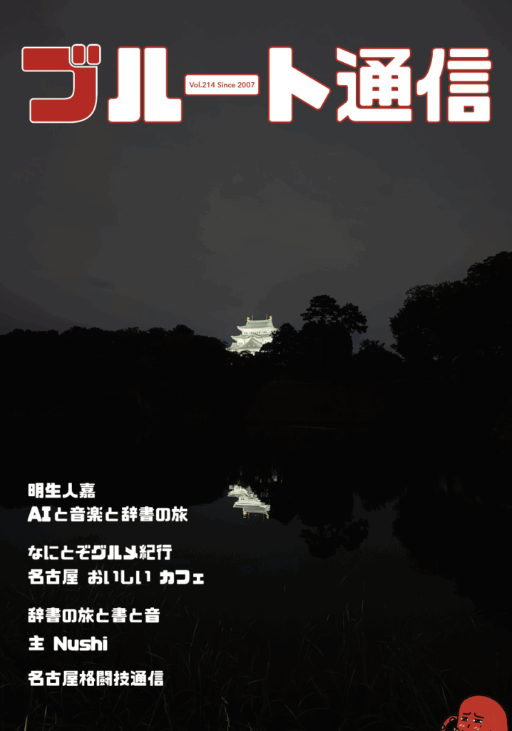 二〇二三年初秋から始まった辞書の旅と書道特集。二〇二五年初夏からは音楽生成AIの手を借り、五十音の名曲作り。今号は、「ぬ」の「主」まで到達し、邦楽「主はまだ」、洋楽「Still, Never End」を配信した。